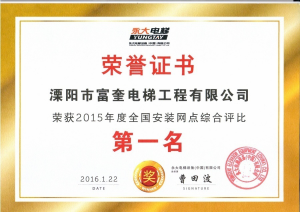溧陽(yáng)市富奎電梯工程有限公司 溧陽(yáng)市富奎電梯工程有限公司是于二OO八年一月九日在原前身溧陽(yáng)市電梯工程公司基礎(chǔ)上成立的,是專業(yè)從事電梯銷售安裝維修、保養(yǎng)的企業(yè)。是國(guó)家質(zhì)監(jiān)總局頒發(fā)的特種設(shè)備安裝、改造、維修A級(jí)安裝許可證單位。公司組織機(jī)構(gòu)實(shí)行總經(jīng)理負(fù)責(zé)制,公司下設(shè)管理部、銷售部、安裝維修部、質(zhì)安部、財(cái)務(wù)部,公司另外設(shè)十二個(gè)分公司:四川分公司、江蘇分公司、上海分公司、浙江分公司、湖南分公司、遼寧分公司、山東分...